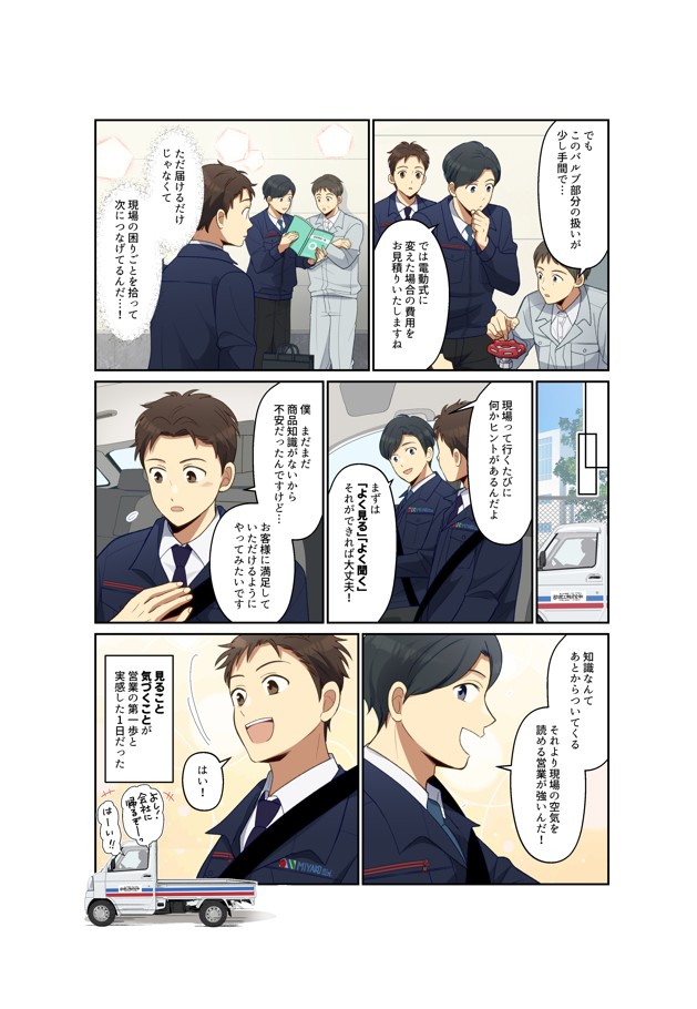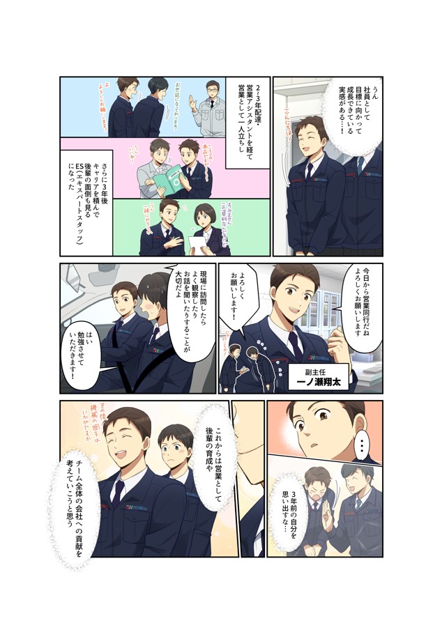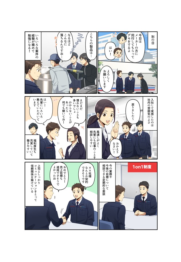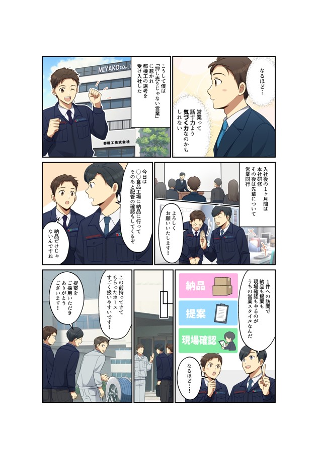 マンガ マンガ活用_都機工様 都機工様の採用活動向けのパンフレットにマンガを採用いただきました。 当社営業職の採用を目的に、営業職の特徴や魅力、会社の雰囲気の良さや充実した福利厚生を伝える内容となっています。 ホームページはこちら 採用ページはこちら 内容: マンガ6P+表紙・裏面デザイン マンガ活用_優塗装様